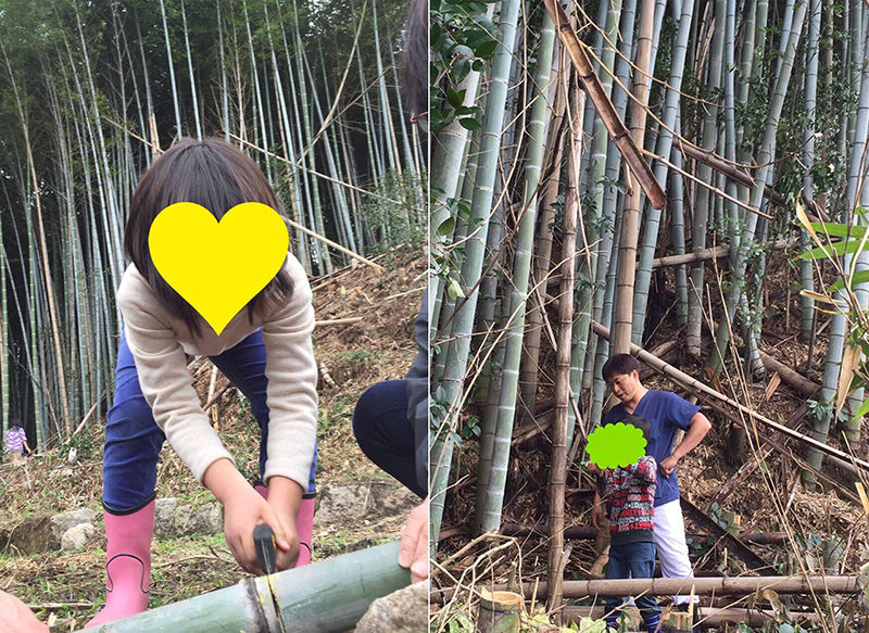 じゃがいも農園代表のせきとうゆうじさんが、とても楽しい企画を提案してくださいました。 竹やぶの竹を切り倒し、長い竹をみんなで担いで帰り、その竹でコップを作りと素麺流し! もうみんな大喜びでした(≧∇≦) 玄米のおむすびと採りたて新鮮野菜のサラダも沢山用意してくださり、本当に楽しく美味しく頂きました。沢山食べた後は、烏骨鶏の家の掃除、畑の水撒きを体験。こどもたちは最後まで笑顔でした! こどもたちに経験して欲しいと思っていたシンプルで生きていくために必要な体験が出来たと思います。 こどもたちから「また行きたい!」と早速リクエストされちゃいました。 じゃがいも農園、せきとうさん本当に貴重な体験ありがとうございました。